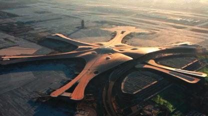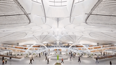 北京大兴国际机场航站楼是全球首个“双进双出”的航站楼,航站楼核心区的屋面钢结构为世界最大机场钢屋盖,相当于25个标准足球场大小;