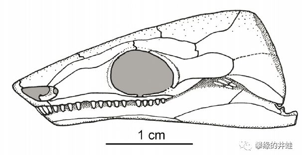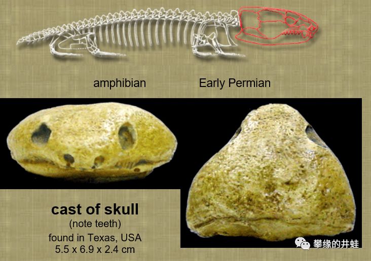 大型离片椎类Sclerocephalus,刚孵化的蝌蚪也只有1.5厘米。它的幼鲵阶段会比较长,最后发育成1.8米长的大家伙。比它更加巨大的始鲵类也是一样。图片来源自[11]。