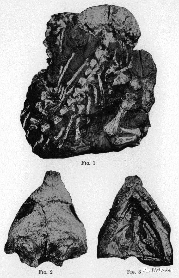 一种早二叠世Ostodolepidae科动物Nannaroter mckinziei的头骨化石。发现地:俄克拉荷马州Richards Spur。这个科的动物都有一个上翘的小“猪鼻”,挺可爱的。图片来源自[7]。