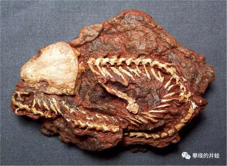 俄克拉荷马州Richards Spur发现的鳞鲵类Cardiocephalus peabodyi(裸节螈科)的完整化石。它生活在二叠纪早期,体长大约20厘米,脊柱延长,四肢纤弱,表明是高度水栖的动物。图片来源自网络。