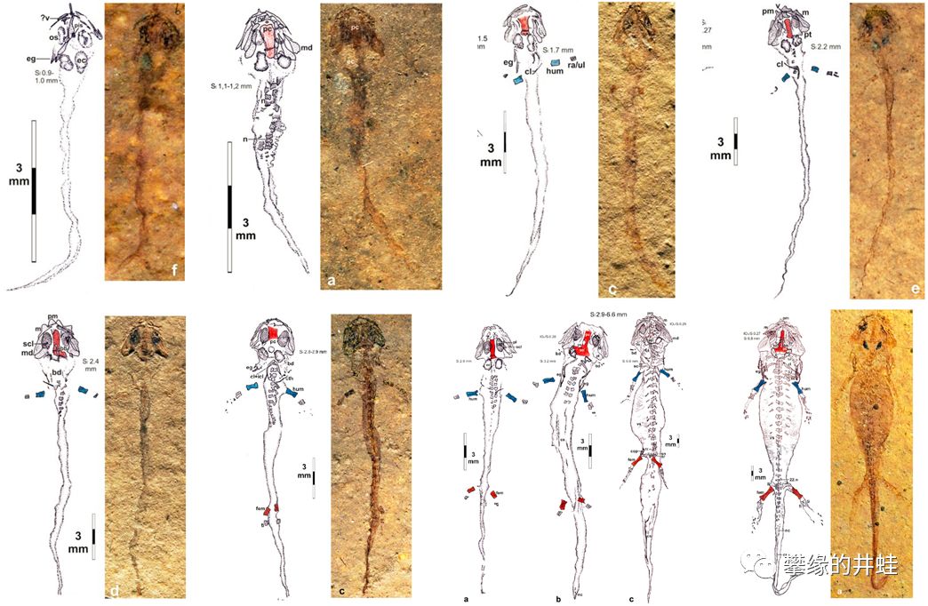 而壳椎类恰恰相反,目前发现的最小的壳椎类幼体,都有骨化完全的脊椎和肢骨。换言之,壳椎类的幼体发育非常完善,完全没有软趴趴没四肢的“蝌蚪”阶段。