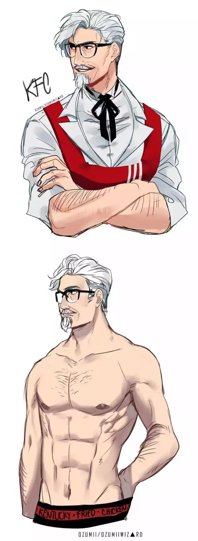 这些漫画与此次肯德基换的新形象,巧妙地不谋而合,都是又man又柔,又硬朗又朝气,是一个心有猛虎细嗅蔷薇的温柔绅士。