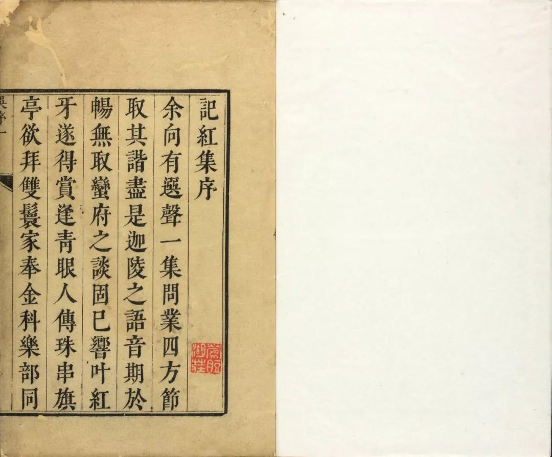 《记红集》前的吴绮序言.清康熙时期刊本.现藏美国哈佛大学图书馆