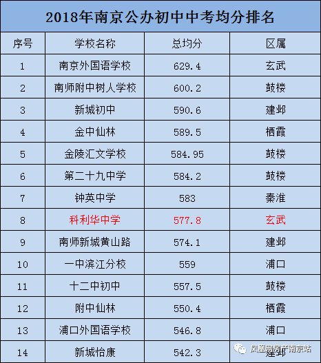 在去年南京公办初中中考均分排名中,科利华中学2018年中考总均分577.8分,高出市均分60.3分,稳居玄武区公办校前列。