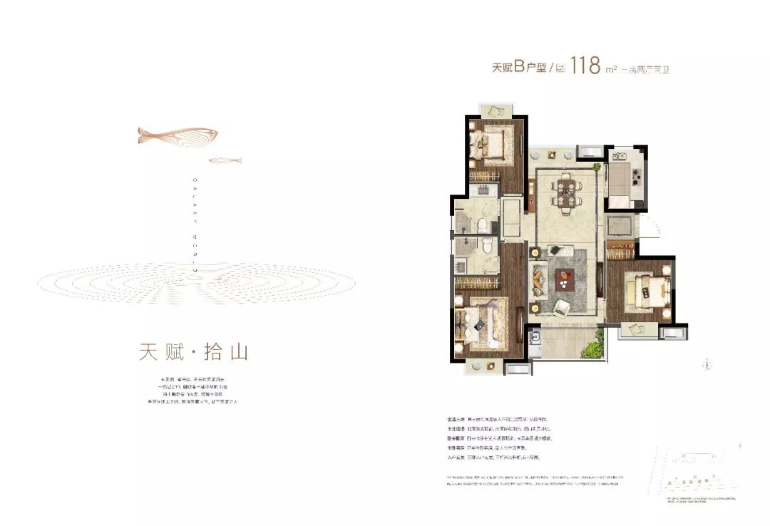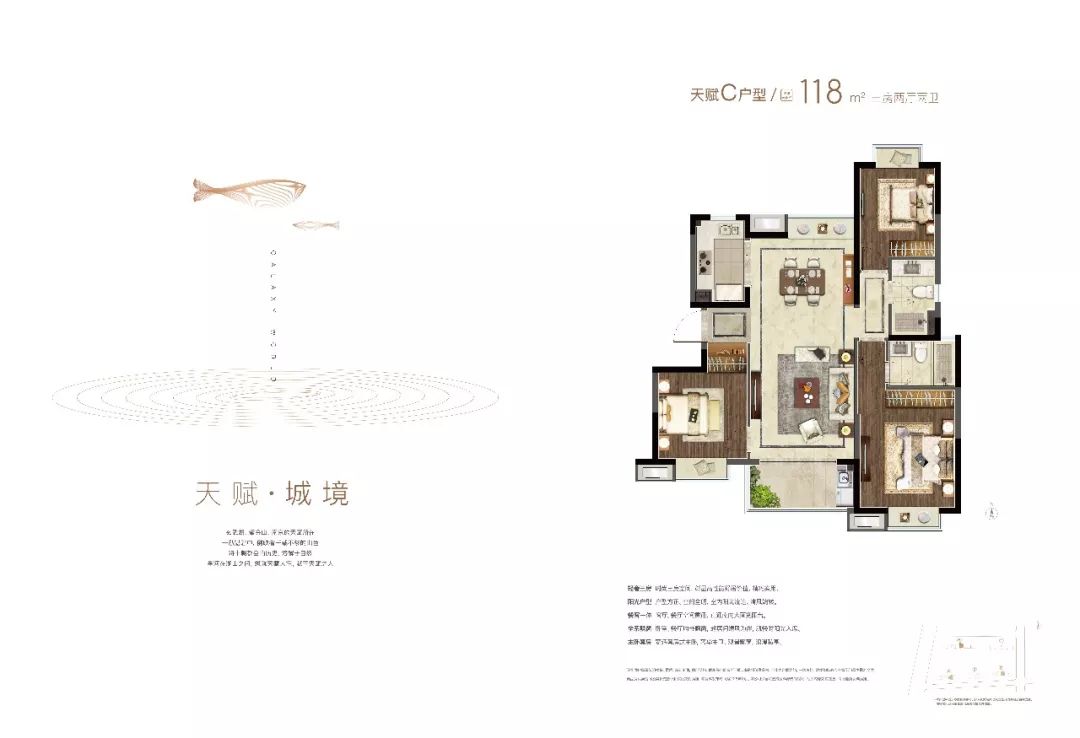 建筑面积约118㎡3室2厅2卫,样板间高清大图鉴赏↓↓