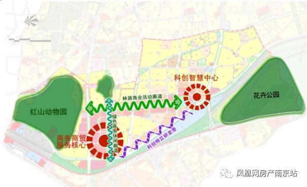 据规划,玄武新中心将以丹霞路为中轴,形成“两心两园 两廊一带”的新格局。