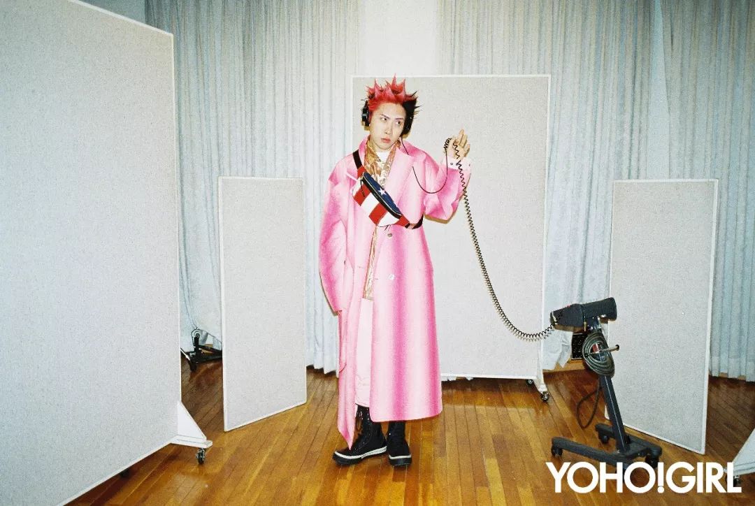 粉色长款风衣、粉色运动长裤 均为 Feng Chen Wang