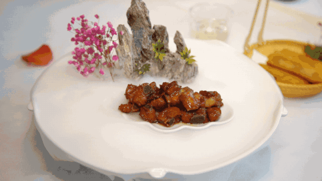 我还记得这里的黑松露春笋红烧肉,按位上,形态上用食品级塑料纸包裹,以保持热度,同时增加了一种仪式感。还有酸汤拆烩鱼头羹,拆烩鲢鱼头原本是淮扬菜“三头宴”之一,被这里创造性加入贵州的木姜子与酸汤,微酸的口感带着一点胡椒的惹口,令人叫绝。