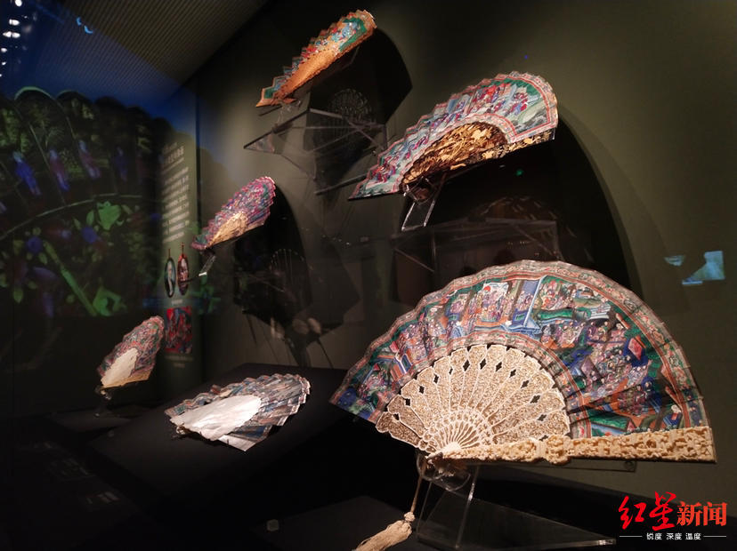 本次展览中就有这样一件“象牙劈丝透雕人物徽章纹折扇”,展品以细密的象牙丝为背景,其上再浮雕农耕、商贸、官吏等场景。这把扇子的提供单位——东莞市博物馆的保管部主任杨晓东表示,这是给观众的“首推”展品:“它的工艺和布局都令人赞叹,繁密而不繁琐,是当时广东制扇工艺最高水平的代表之一。”