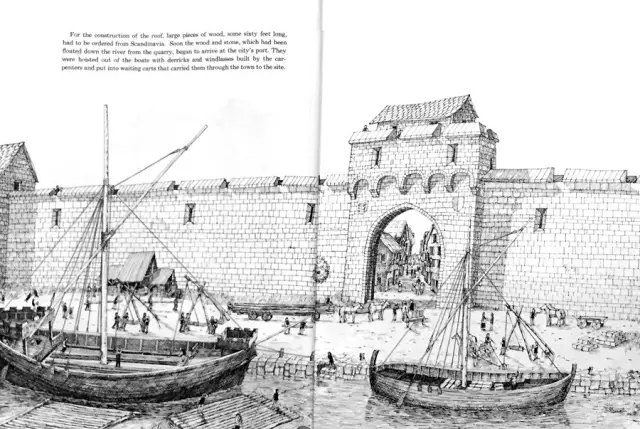 这时候,造屋顶的大木头从斯堪的纳维亚半岛运来了——进口材料啊。石头也到了。这些材料的运输都仰仗航运,很难想象,没有靠近河流,大教堂是否能够建造起来。