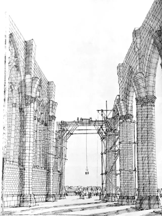 很快,建筑出地面了。高耸的拱廊几乎就是哥特大教堂的灵魂,它们将撑起高耸的屋顶。立面全都由精美的花窗组成。