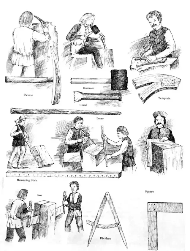 然后作者展示了大量的工具,足以证明教堂修建是非常复杂非常精确的工作。