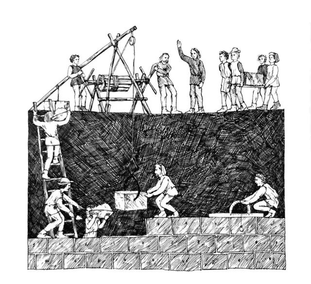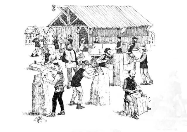 砍木头不光为了找建筑材料,大教堂是石头的,可是建造大教堂几乎需要同样多的木材——后面会讲到为什么。采石公司老板(master of quarryman)更厉害,光学徒就带了50个,劳工200人,先在采石现场弄了个铁匠铺——工欲善其事,必选利其器,打好工具再凿石头。