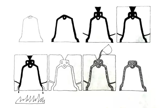 细心的人可以注意到上面这三张画面的左侧,都有一个鸟妈妈,从孵蛋到小鸟破壳到嗷嗷待哺,很微妙地表达了建造一组拱顶所需要的时间。