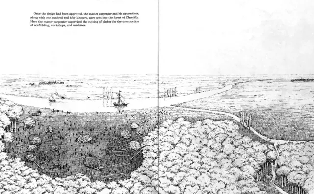 每块石头都要标上将来要准备做哪个建筑部件,从哪儿采的,将来才好一块块按件计价,也就是说,这时大概的材料数量和每个材料的尺寸都应该是确定了,不知道是不是William画的图?