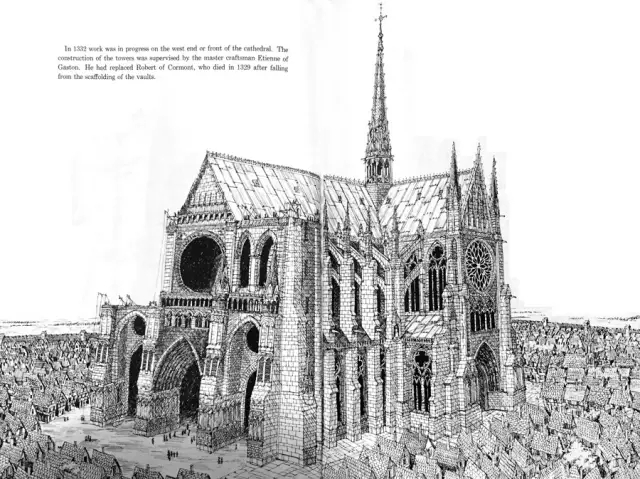 正在人们搭建拱顶的时候,Chutreaux的主教去世了,他被放入地下给老主教们留下的墓穴。工程为此停工7天,随后新主教上任。甲方和建筑师全都换了一茬,工程进展却尚未过半。