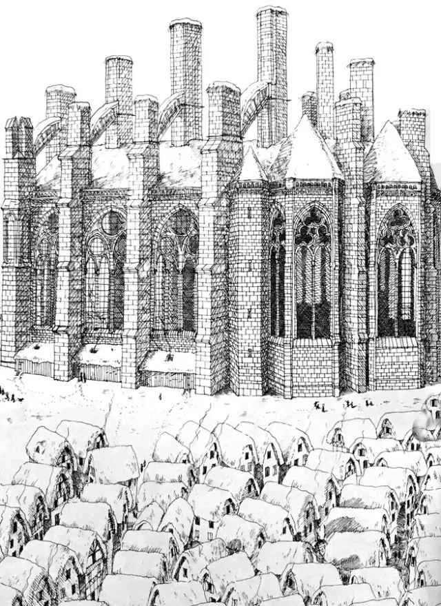 到了1270年的夏天,教堂东端的后殿和小礼拜堂(平面图最顶部半圆的部分)基本建造好了。此时,距离开工已经有17年了,但一切其实才刚刚开始。
