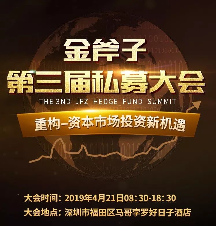 由金斧子、正心谷创新资本、招商证券联合主办的金斧子第三届私募大会将于4月21日在深隆重召开,本届私募大会以“重构——资本市场投资新机遇”为主题,将广邀行业大咖、业界精英齐聚现场,回顾2018年到2019年一季度资本市场的行情波动,前瞻2019年接下来的投资趋势与主线。