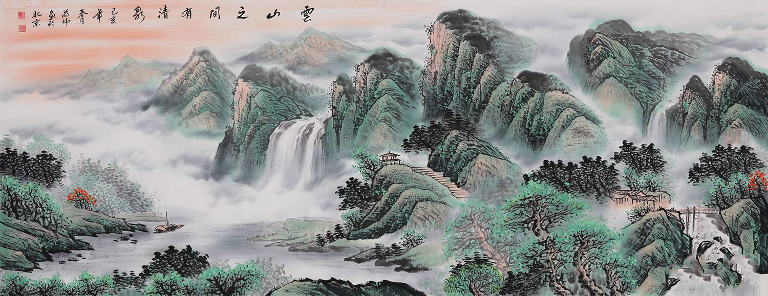 画家蒋伟·《云山之间有清泉》(68*178cm)