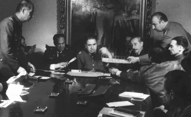 美国见智利大乱,立即见缝插针,扶植代理人进行政变。右翼的皮诺切特在美国的支持下发动叛乱,阿连德总统英勇战死。就这样,美国兵不血刃地去除了一个大敌,智利又重为美国财阀控制。