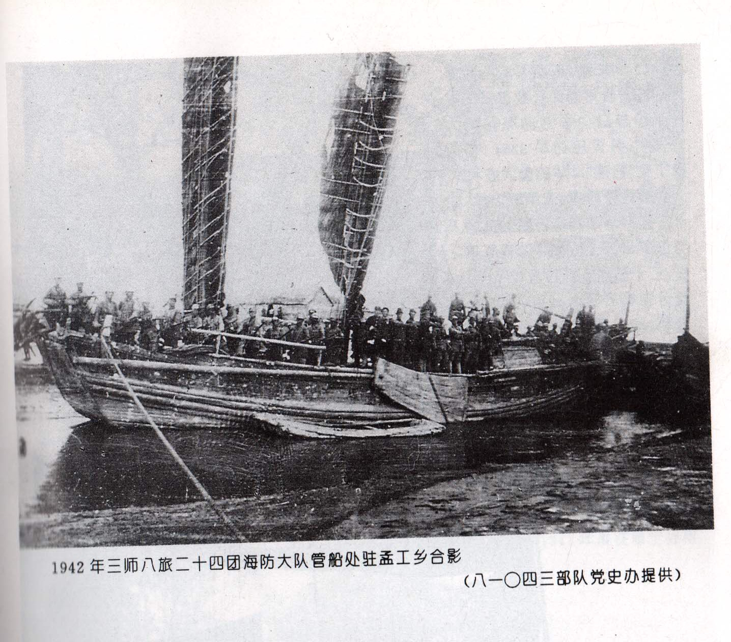 据了解,这张照片是1942年三师八旅二十四团海防大队管船处驻孟工乡合影,距今时隔77年。
