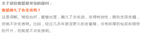 有人说蜜蜡比琥珀年代久,所以值钱,因为“千年琥珀,万年蜜蜡”。