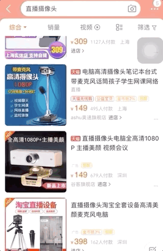 打开淘宝,输入直播摄像头,跳出来的产品已经把“美颜”打在了封面上,筛选价格,高的上万,低的几十。