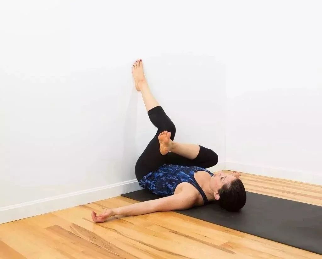 双脚靠墙,保持3-5分钟,换另一侧。