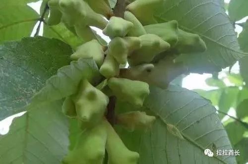 《图经本草》:“五倍子旧不著所出州土,云在处有之。以蜀中者为胜。生肤木叶上,七月结实无花。其木青黄色,其实青,至熟而黄,大者如拳,内多虫。九月采子曝干。生津液最佳。”
