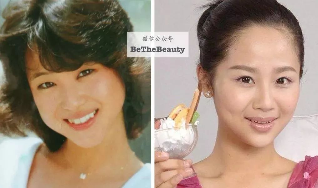 ▲左边的齐藤由贵脸更短宽,文根英早期脸更窄长,也可反映时代审美变化