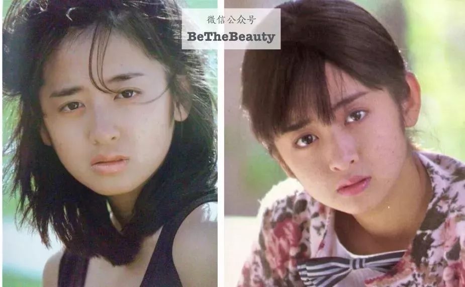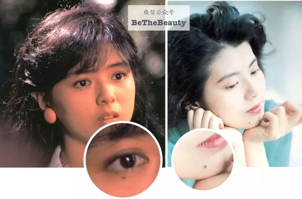 ▲药师丸博子有一颗泪痣,南野阳子(右边这张有点袁咏仪感哈哈)下巴有颗痣