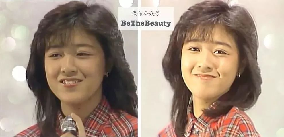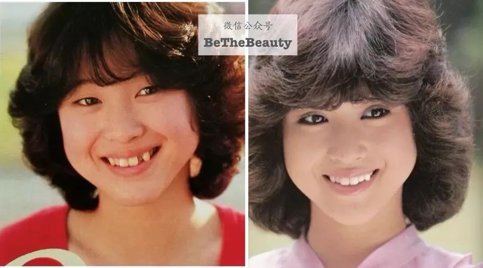 ▲松田圣子的牙一直不整齐,但后期牙还是比前期要整齐些