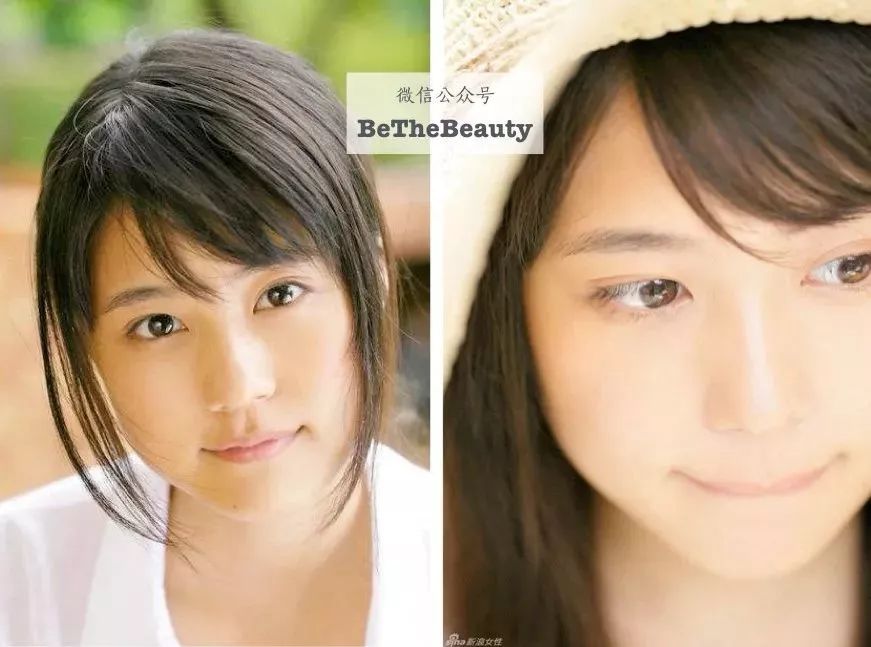 ▲桥本环奈不算五官特别大脸特别小的类型,但这么对比,可以感觉药师丸博子,明显脸大一圈,五官小一圈