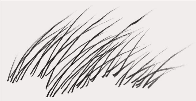 第三步:继续从其他的边缘线向下画草,五六根草为一组。注意大小疏密变化。