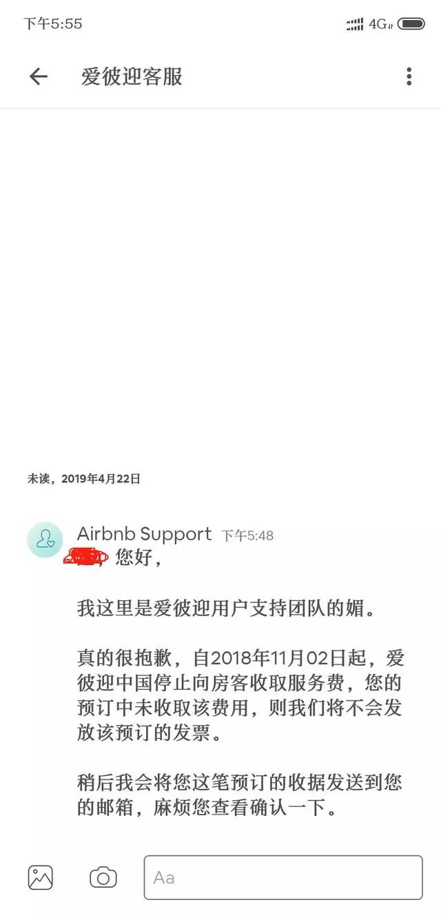 小编已经第一时间联系Airbnb爱彼迎售后进行确认,居然得到的客服回话是“非常抱歉,Airbnb爱彼迎,受到政策限制,我们不能开具发票”。