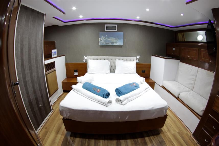 Emperor Elite是一艘38米的传统定制帆船,提供红海优质潜点的全年潜水。船上共有12间豪华客舱,配有独立的空调、平板电视、套房浴室、迷你酒吧等。