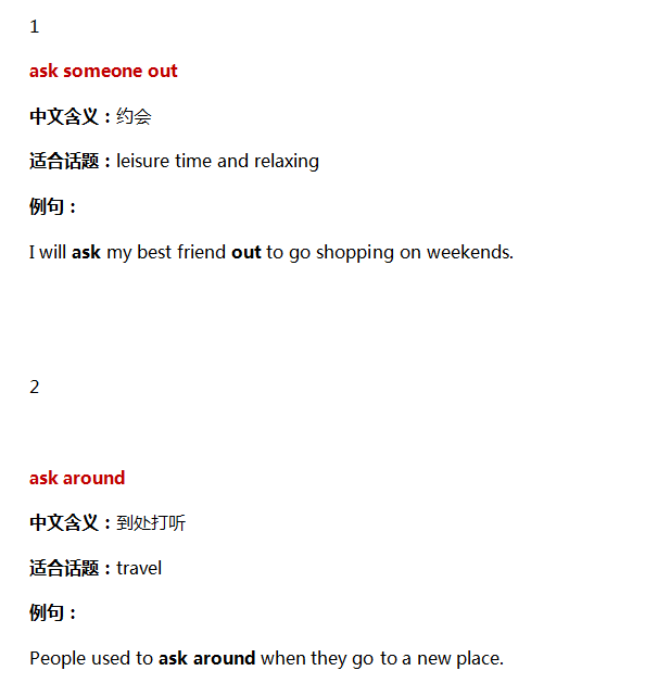 词组+含义+适用话题+例句