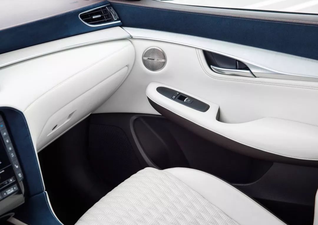 内饰的设计也是一场革新。个人很喜欢米白、海蓝的配色,给人感觉宁静、悠远,仿佛置身海边。的确,据官方口径,这套内饰灵感源自圣托里尼,融入地中海风格,甄选高档皮料,搭配独特裁减工艺。两道弧线,从中控台一笔画到扶手箱,流畅优美,实为点睛之笔。获得“沃德十佳内饰”,实至名归。