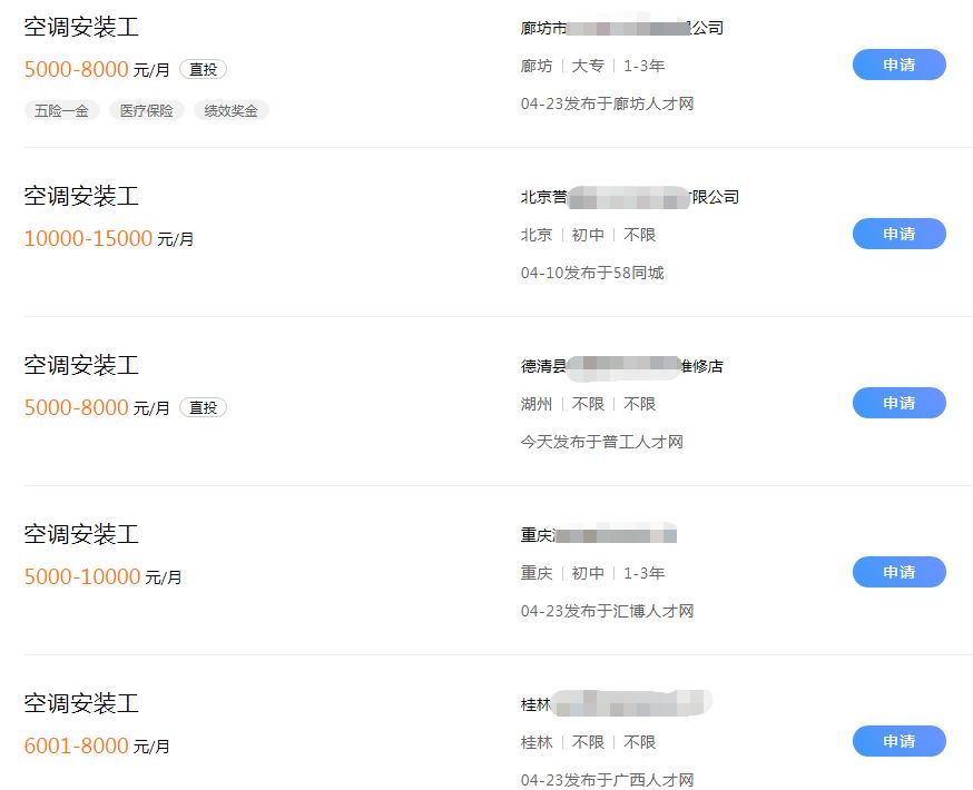两则空调安装工的招聘信息: