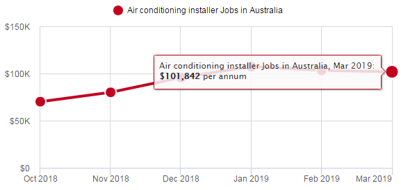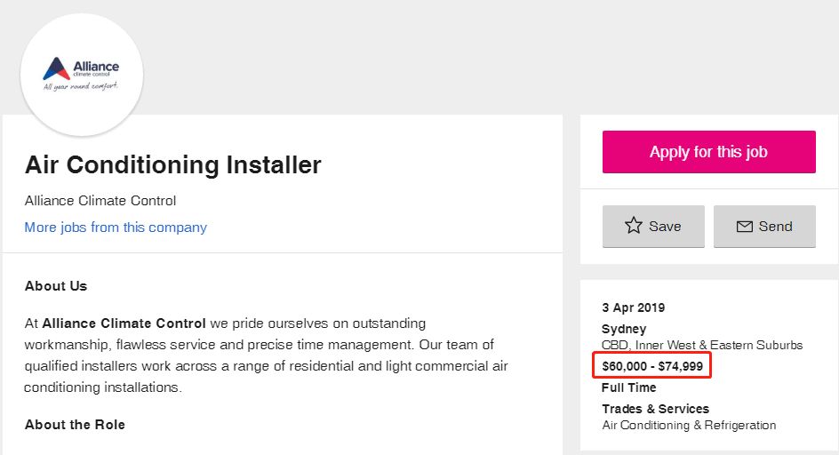 从另一个澳洲另一个大型招聘网站Adzuna上,可以了解到关于空调安装工最新的薪资数据: