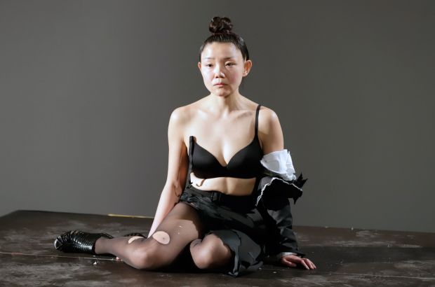 ▲ 艺术家谢蓉(Echo Morgan)再现小野洋子(Yoko Ono)的作品《切片》