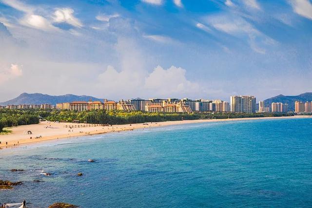 在三亚市的兔尾岭和鹿回头两个山头中间,有一个自然形成的半月形浅水海湾,水暖,沙白,滩平,岸边有成片的木麻黄,孩子们和年轻男女喜欢在海滩上拾拣那些五颜六色的贝壳。