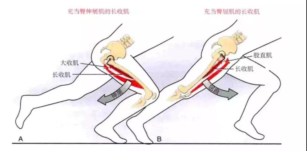 而在小于40°的屈髋状态下,内收肌群的屈髋作用较大