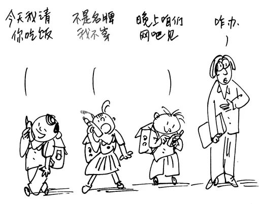在家里墙壁上画,受到家长的批评;在走廊楼道里画,受到邻居的批评;在台阶马路上画,受到居委会的批评;在课本作业上画,受到老师的批评。