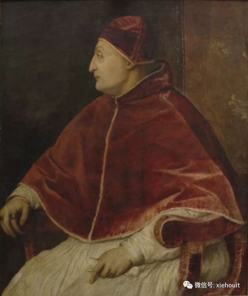 提香的《教宗思道四世画像》,收藏于佛罗伦萨乌菲兹美术馆