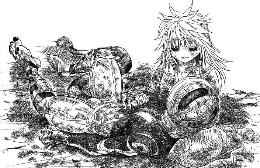 动画中对于王与小麦临死前的伤感还没有那么强烈,到漫画中漆黑的画面只有寥寥几句话,显得氛围格外压抑,这是全职猎人中最容易落泪的画面了,或许有人说作者偷懒,但是确实达到了效果,最后王死在了小麦的怀里。结局虽然正义战胜了邪恶,但是却让人看得格外的难受,这场战斗无论哪一方都是失败方。全职猎人对于重要角色的死亡也是不吝啬,王和三大护卫军及大部分师团长死亡,许多辛苦刻画出来的人物也是如此。