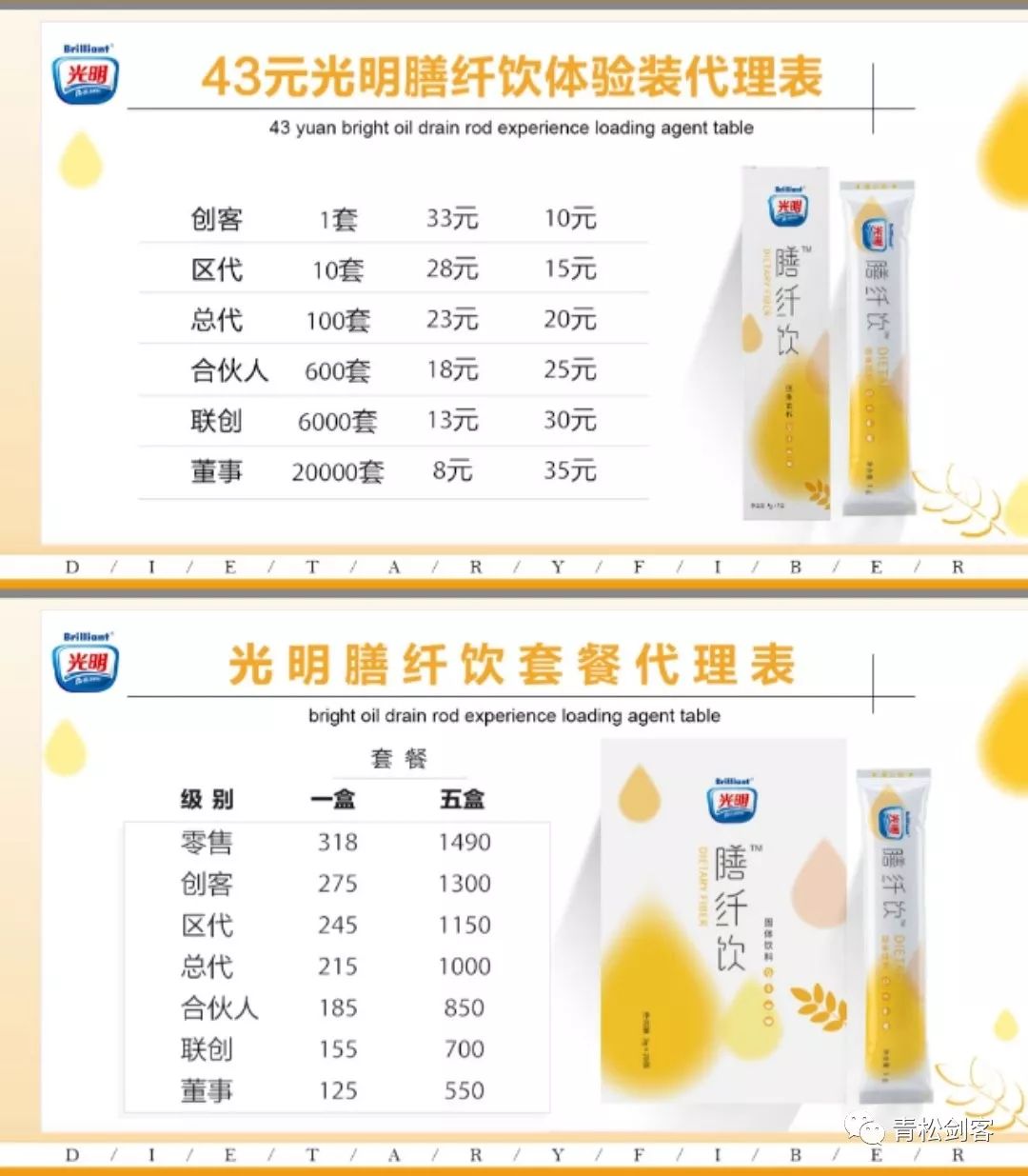 其有两套代理制度分别分为体验装代理和套餐代理