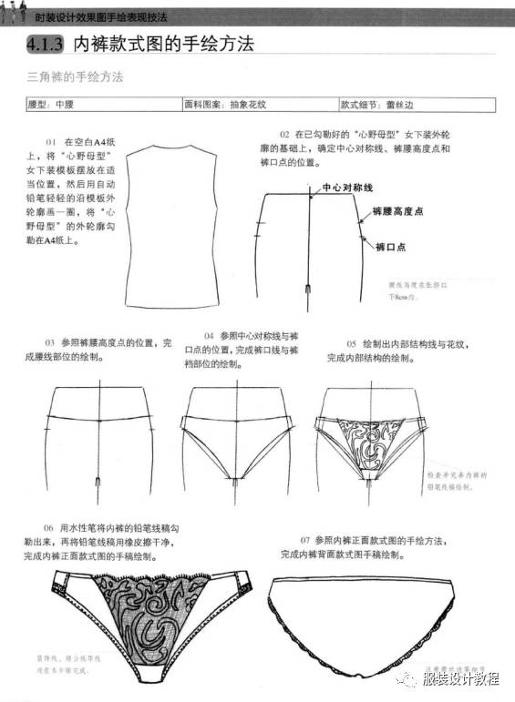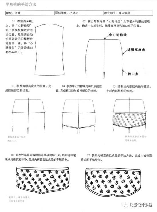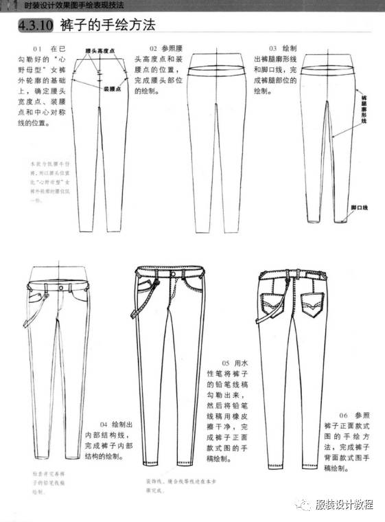 Step 06 参照裤子正面款式图的手绘方法,完成裤子