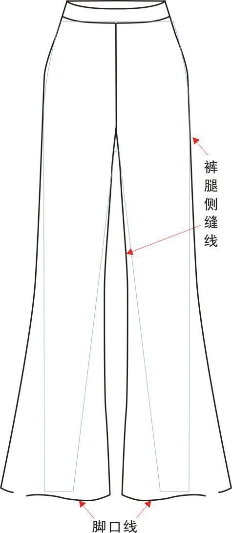 Step 03 绘制出裤腿侧缝线和脚口线,完成裤腿的绘制。