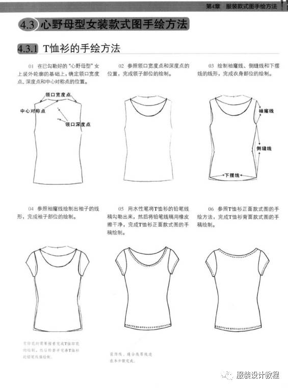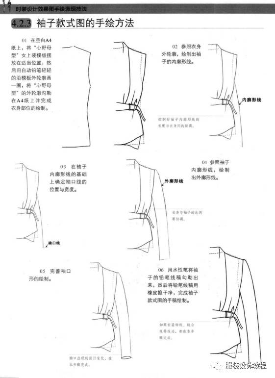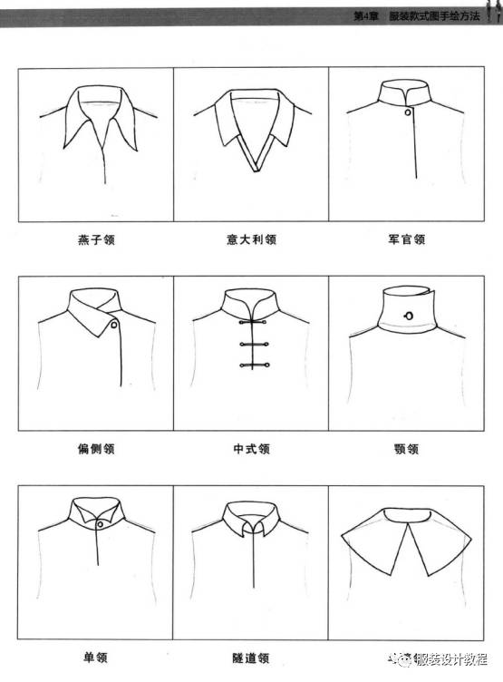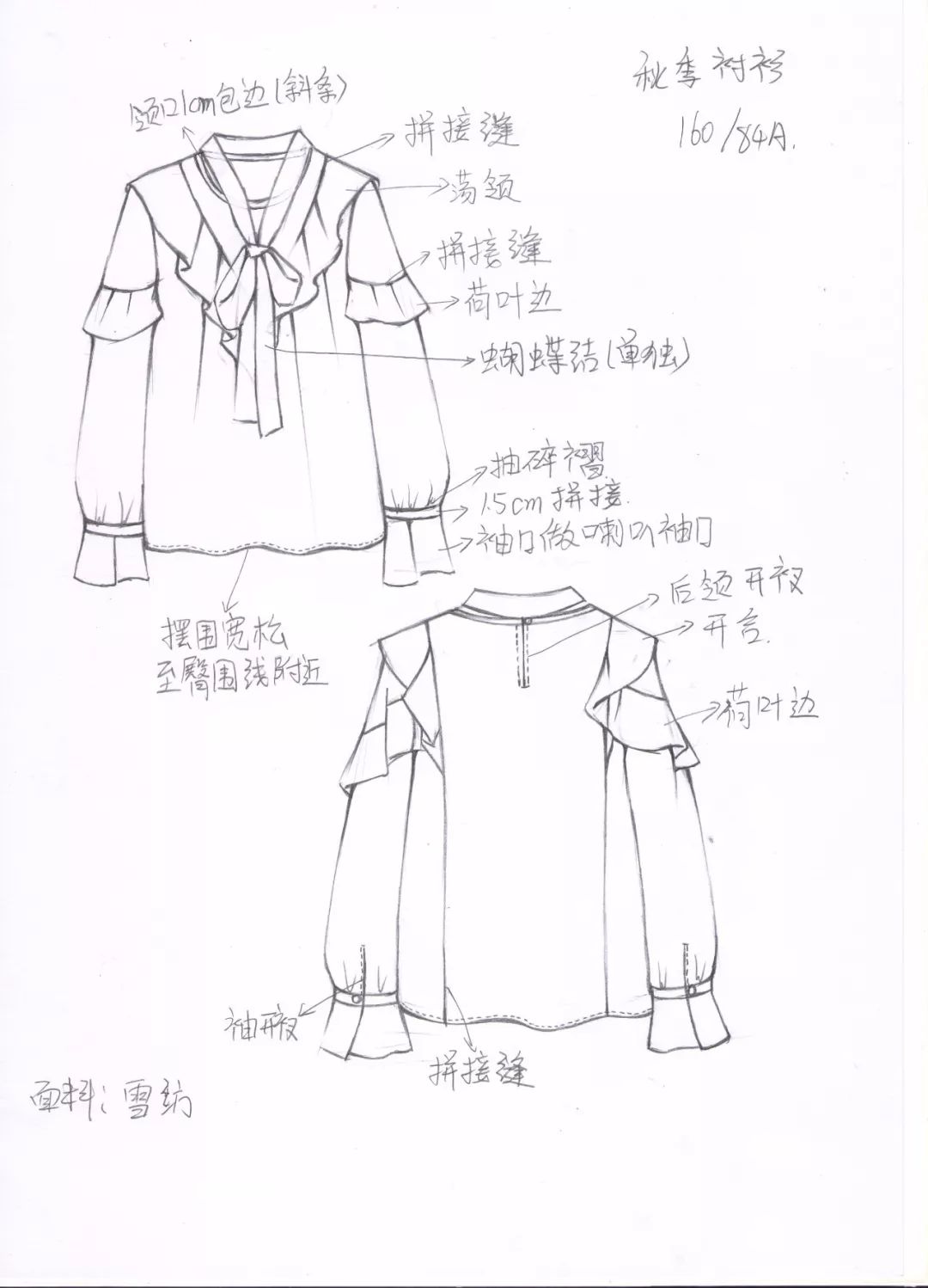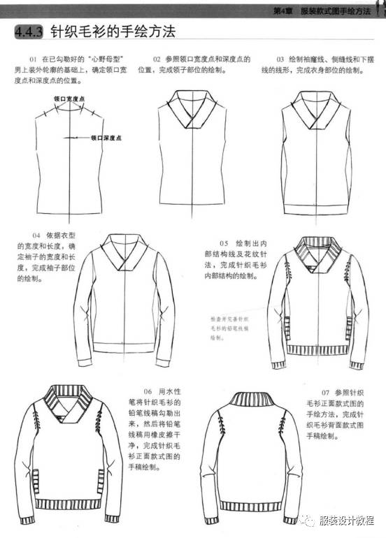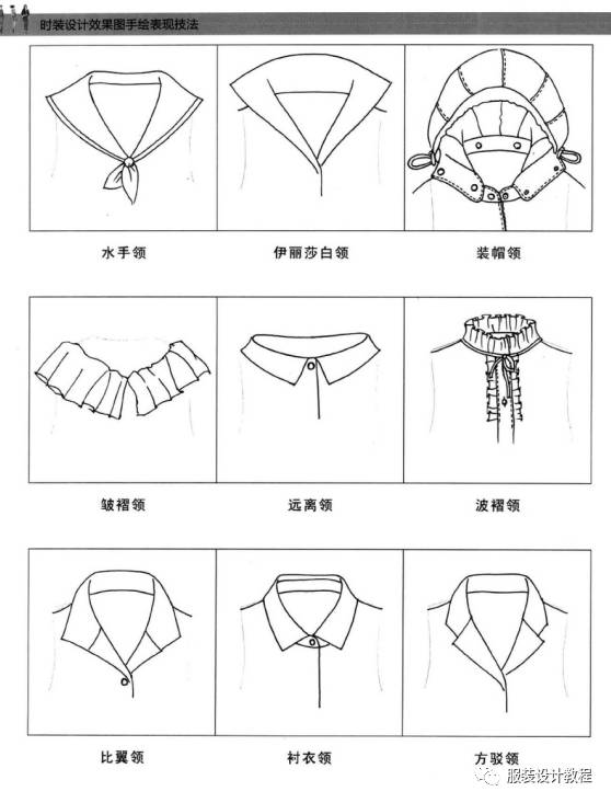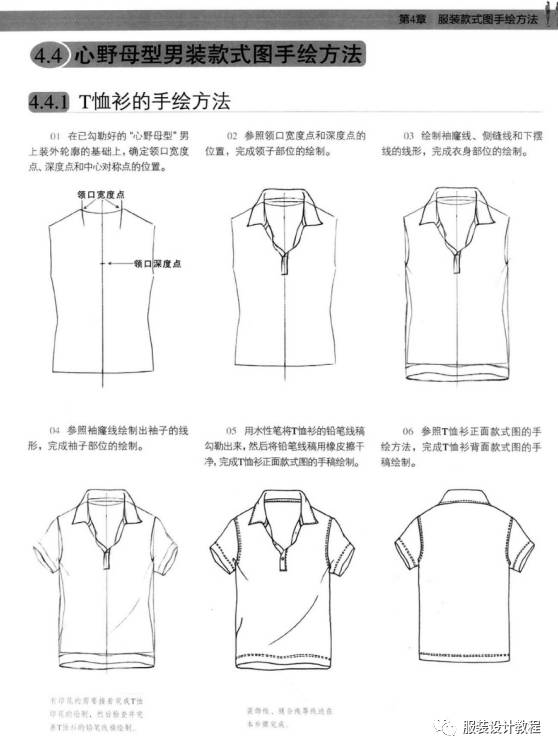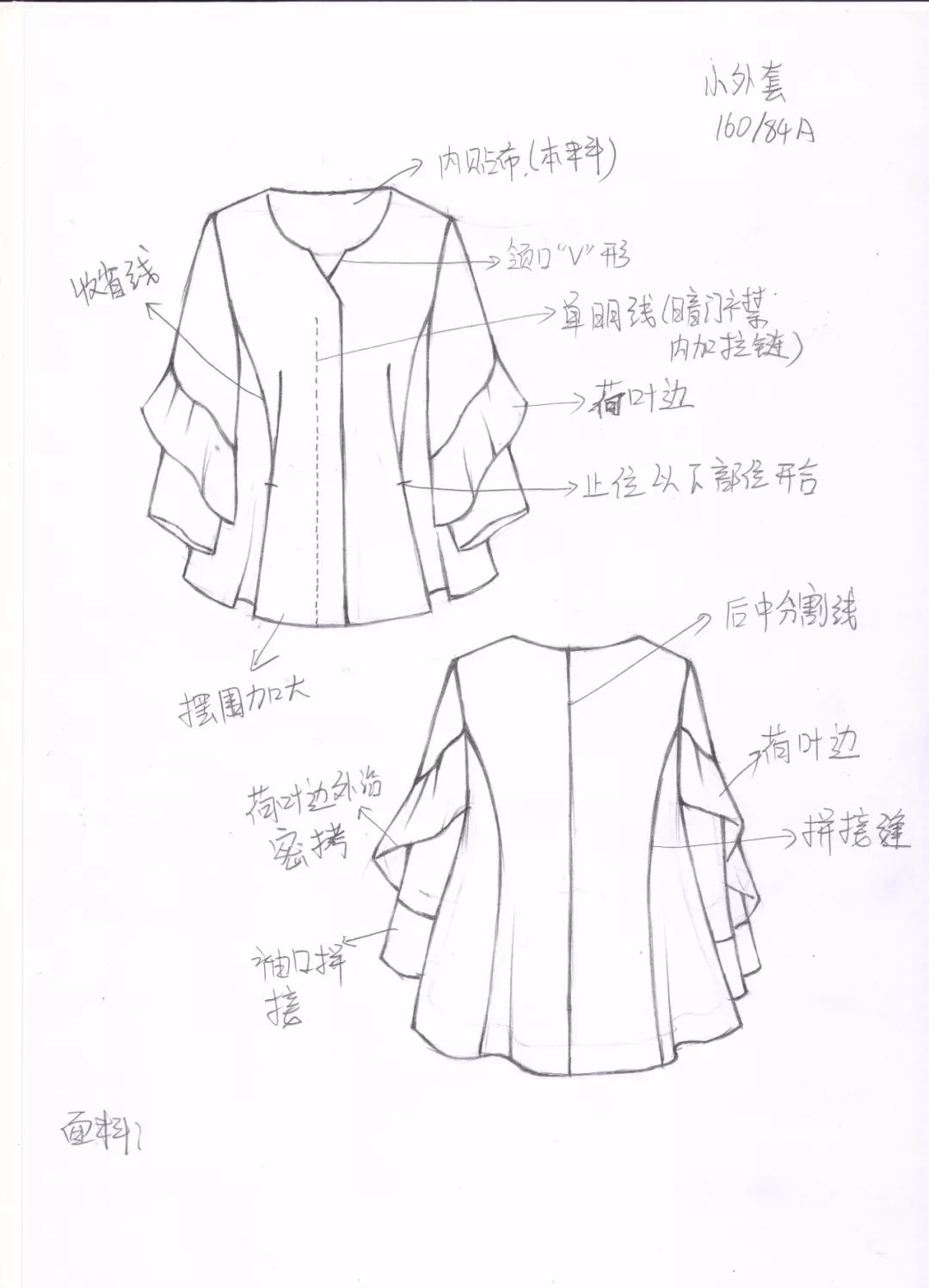 绘画的顺序是:领口—门襟—肩—袖窿弧和侧缝—下摆—袖子—内部零部件